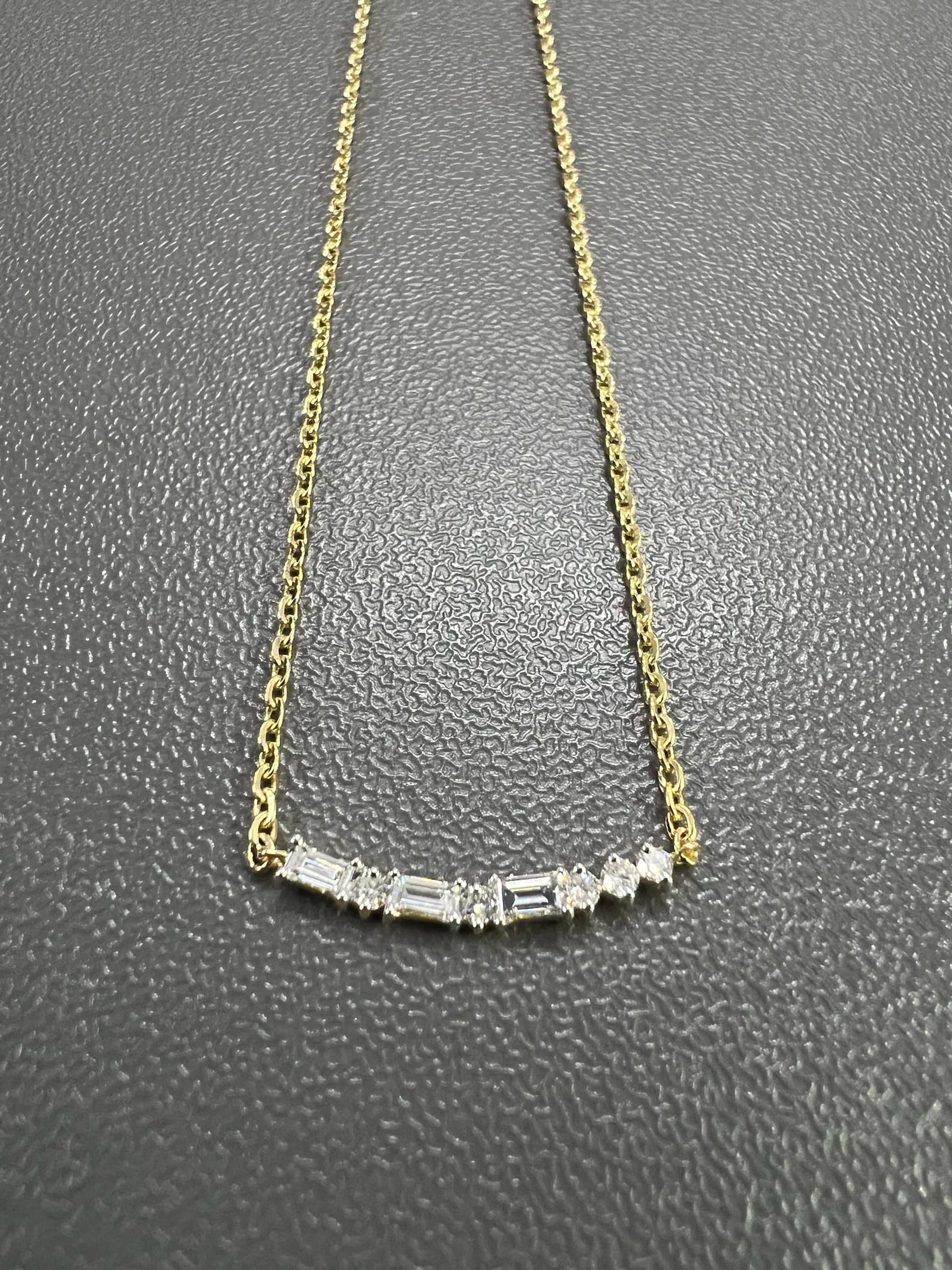 Celebrate love, moments, and messages with this personalized Morse Code Necklace crafted using ethical lab-grown diamonds. Featuring a delicate sequence of antique baguette and round-cut diamonds, this necklace spells out a hidden message in Morse code – a unique way to keep a secret close to your heart.
