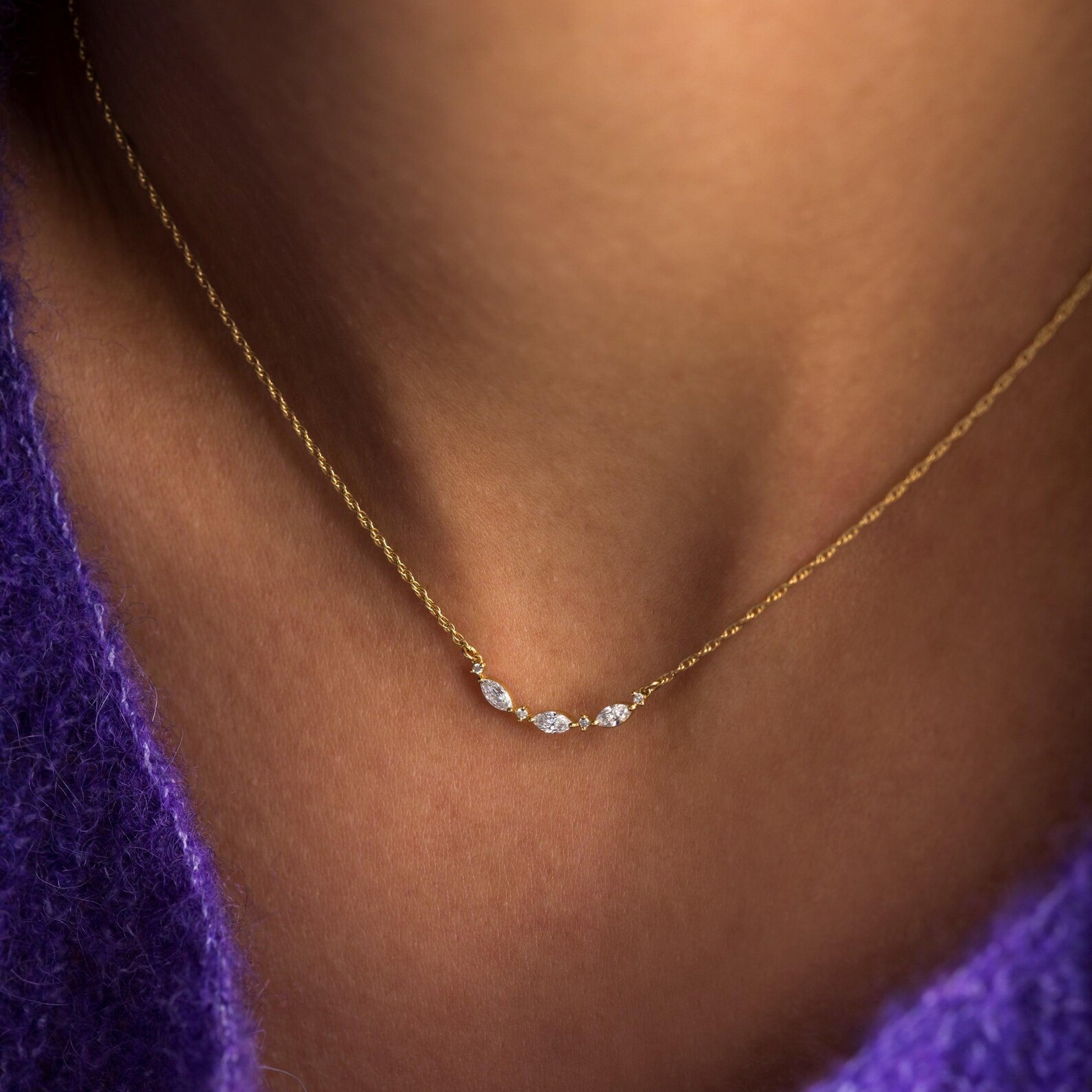 0.80 Ct Marquise Cut Lab Grown Diamond Pendant Necklace - Diamond Cluster Layering Necklace -Minimalist Wedding, Engagement Jewelry Gift