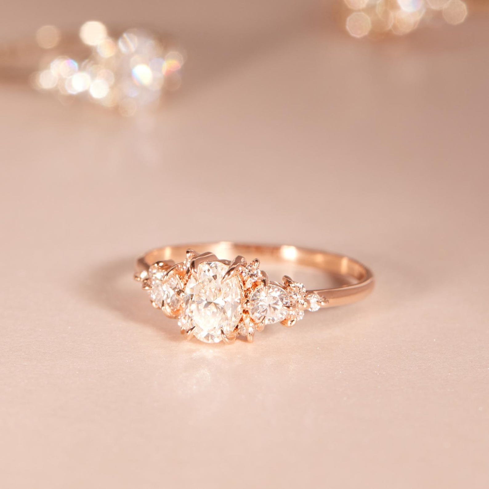 0.80 TCW Oval Cut Lab Grown Diamond Ring, Oval & Round Lab Diamond Wedding Ring for Women, Oval Engagement Ring, Anniversary Gift for Her